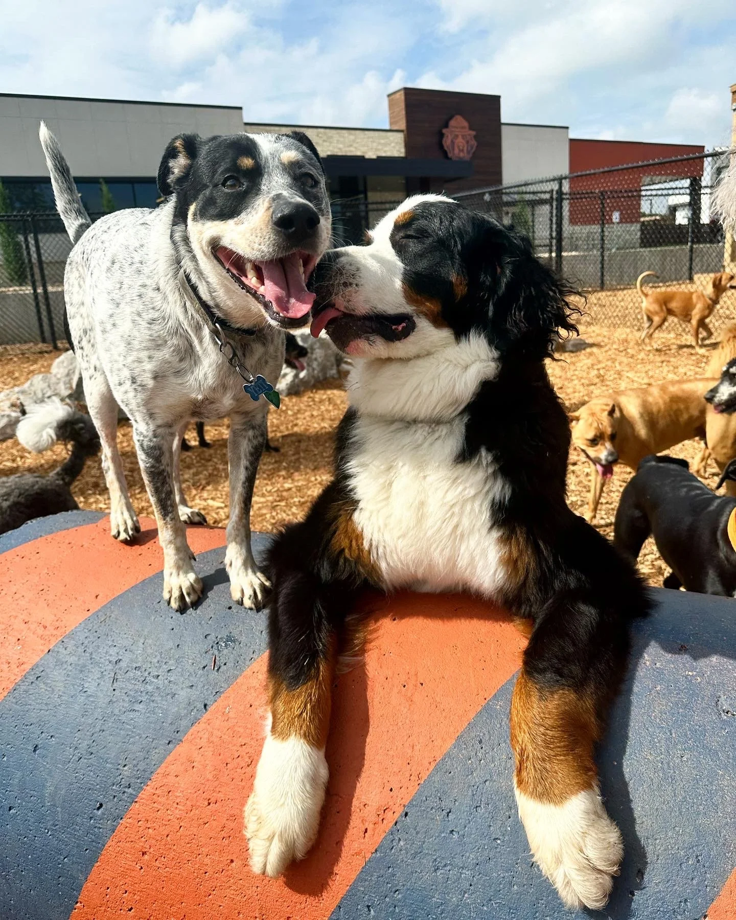 Our facility includes brand-new kennels for nap time as well as a climate-controlled indoor play area and a massive 12,000 sq. ft. outdoor play yard!